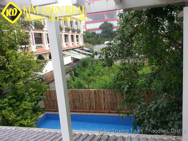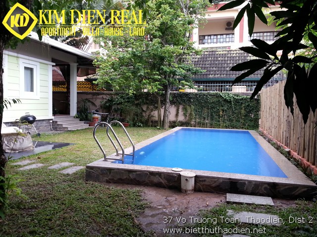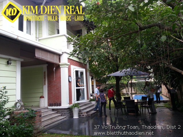 Biệt thự Thảo Điền có sân vườn xung quanh nhà và hồ bơi đẹp, nước xanh biếc, không gian yên tĩnh, an ninh, không khí trong lành là nơi lý tưởng để sinh sống.