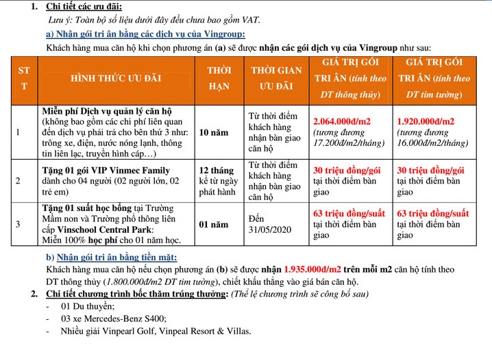 ƯU ĐÃI: Khách mua căn hộ được nhận gói tri ân của Chủ Đầu Tư theo 2 hình thức: