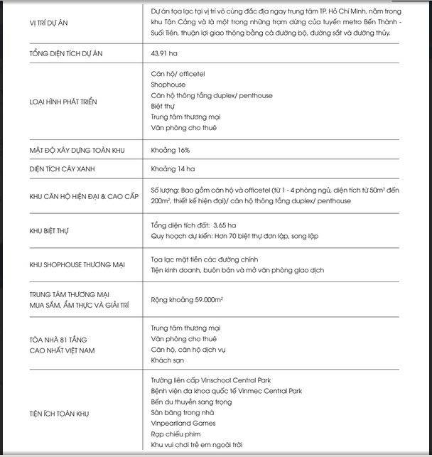 THÔNG TIN DỰ ÁN VINHOMES CENTRAL PARK TÂN CẢNG - HỒ CHÍ MINH