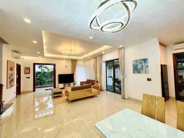 Phòng khách, phòng bếp, 3 phòng ngủ, phòng làm việc. Biệt thự trang bị full nội thất hiện đại sang trọng, khách mua chỉ việc ở ngay