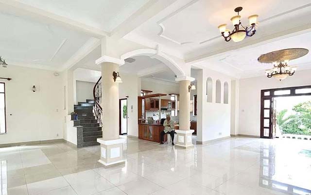 Biệt thự có thiết kế xây dựng đẹp, 1 trệt, 2 lầu, sân vườn. Co 5 phòng ngủ, 4WC. Phòng khách, phòng ăn, Nội thất cao cấp