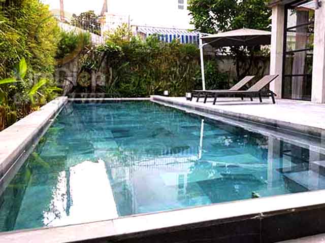Diện tích 416m2 đất, biệt thự có sân vườn rộng và hồ bơi.