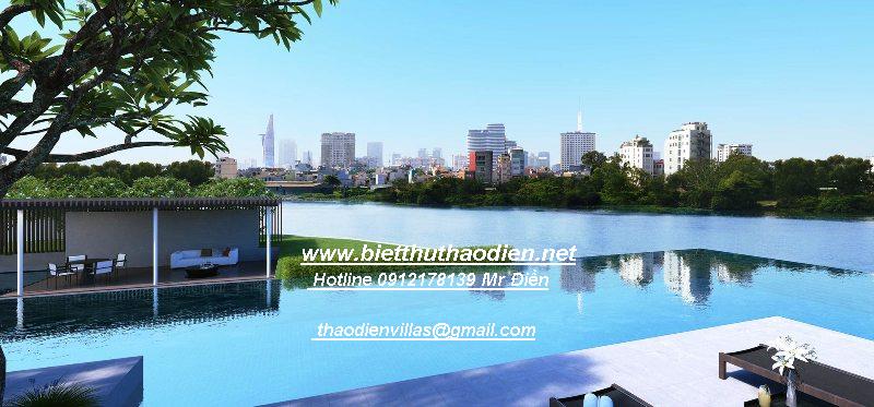 Bán biệt thự Thảo Điền toạ lạc bên sông Sài Gòn Quận 2, một phong cách mới lạ cực cao cấp chưa từng thấy tại Sài Gòn, lối kiến trúc độc đáo tiện nghi và những vật dụng trang trí thương hiệu đẳng cấp nhất, cộng thêm các tiện nghi tiện ích cao cấp phục vụ cư dân như phòng Gym hiện đại bên sông, Hồ bơi tràn bờ mặt tiền sông, bến cano đưa đón cư dân đi lại du ngoạn quang cảnh sông nước, Hệ thống máy phát điện dự phòng sẵng sàng 24/24, bồn chứa xử lý, dự trữ và cấp nước sạch trung tâm cho cư dân . Khu công viên mặt tiền sông Sài Gòn rộng 20m trải dài theo khắp dự án có quang cảnh thơ mộng gió mát trong lành và đón hoàng hôn mỗi khi chiều tà.