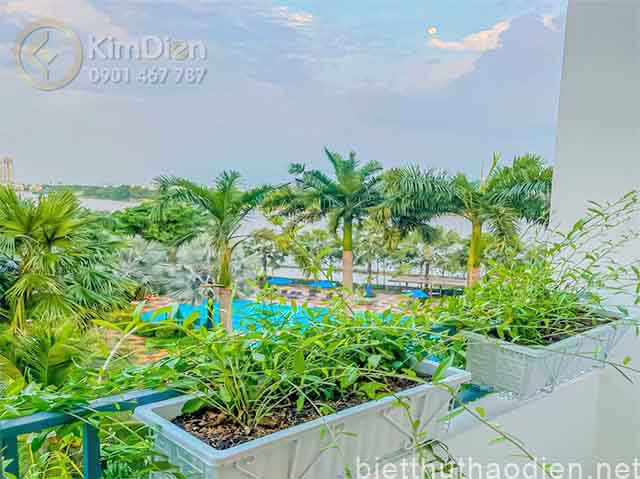 Tiện ích: Bảo vệ, sân vườn thư giãn, bar mini, BBQ sân thượng. Tòa căn hộ có view sông rất đẹp