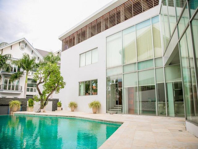 Hình trên là hình chụp thực tế tại biệt thự Thảo Điền đang cần bán. Diện tích khuôn viên 706m2. Diện tích xây dựng 286.6m2, xây chia là 2 khối nối thông với nhau hình chữ U bao quanh bồ bơi và sân vườn theo dạng Resort. Diện tích sử dụng toàn biệt thự là 820.2m2 bao gồm 5PN lớn khu vui chơi giải trí rạp phim, khu hội họp, phòng tiệc ngoài trời...