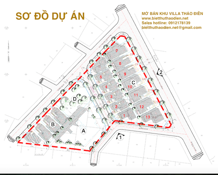 Bán BIỆT THỰ MẶT TIỂN ĐƯỜNG NGUYỄN VĂN HƯỞNG THẢO ĐIỀN QUẬN 2 với diện tích của mỗi biệt thự như sau: