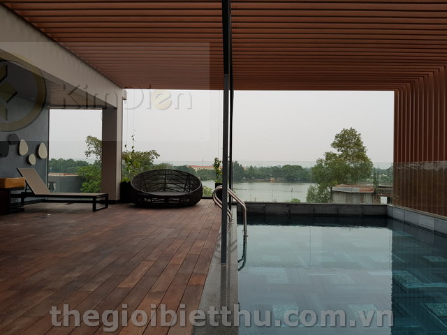 Sân thượng biệt thự Thảo Điền mặt tiền Nguyễn Văn Hưởng là khu sân vườn hồ bơi nước muối, phòng Sauna, khu BBQ cùng nhiều tiện ích khác.