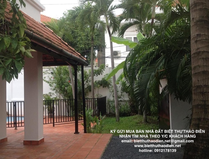 Biệt thự có diện tích đất 1119 m2 thế đất vuông vức, vị trí 3 mặt đường lớn trong khu villa compound Thảo Điền, hướng Đông - Tây - Nam, là một lô đất đẹp hiếm thấy tại Thảo Điền Quận 2. Trong khuôn viên có biệt thự xây dựng 1 trệt 2 lầu có khu Sân vườn và Hồ bơi đẹp như hình ảnh phía dưới. Nhà có 5 phòng ngủ hiện cho gia đình người nước ngoài thuê với giá 3800USD/ tháng.