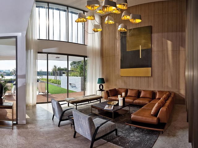 Với các chất liệu như kim loại, da, đá cẩm thạch..., nội thất tại HOLM được thiết kế theo phong cách Châu Âu đương đại cùng những gam màu trang nhã, ấm áp. Từ bộ sofa êm ái được đặt khéo léo tại phòng khách, phòng đọc sách sang trọng với nội thất gỗ trầm ấm cho đến những thanh kim loại trang trí dọc theo vách khiến tổng thể ngôi nhà trở nên tinh tế, ấn tượng hơn.