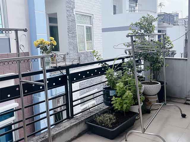 Nhà xây dựng hết đất gồm Trệt, 3 tầng lầu, sân thượng, ban công.