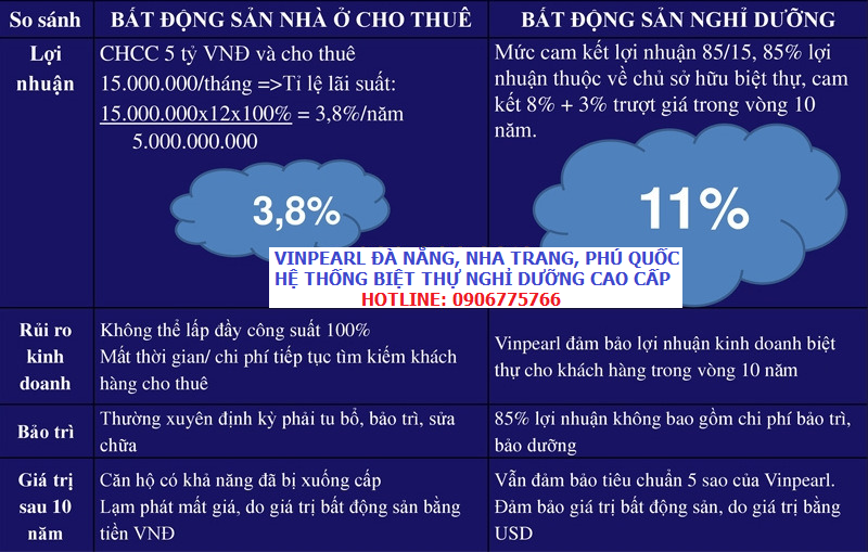 Nếu ra một bài toán về sử dụng đồng vốn đầu tư thì đầu tư vào Biệt thự Vinpearl Nha Trang sẽ có lợi nhuận như sau: