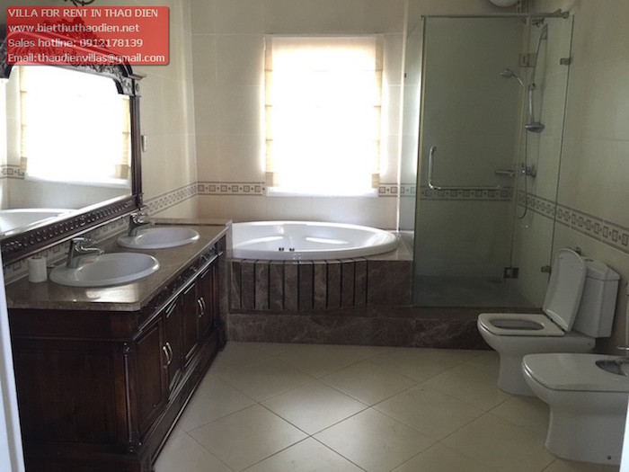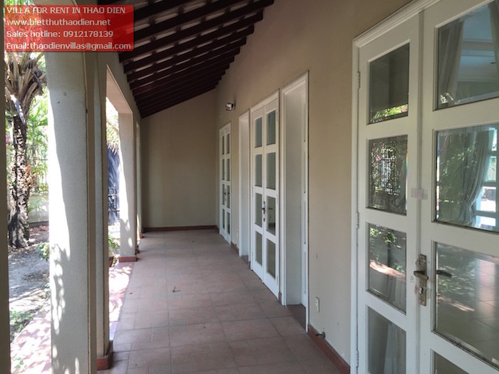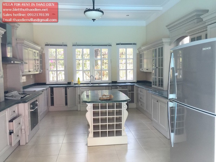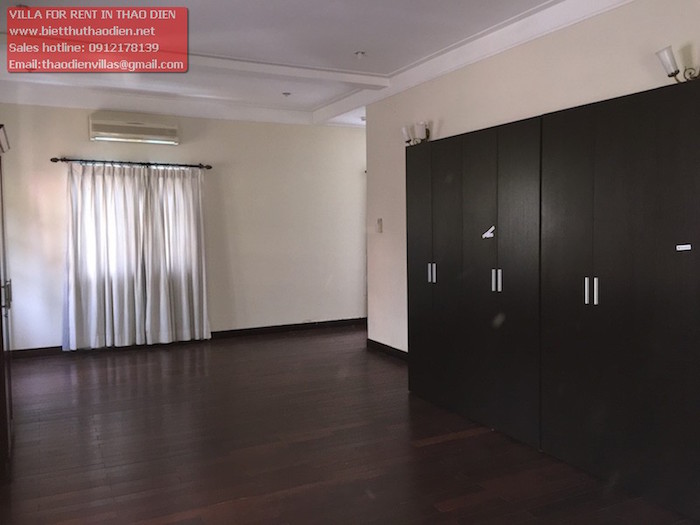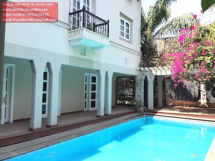 Cần cho thuê villa Thảo Điền trong compound diện tích rộng 800m2 nhà gồm 1 trệt 2 lầu có 5 phòng ngủ lớn tiện nghi có tủ âm tường, phòng vệ sinh, trang thiết bị mới đẹp, khu bếp nhìn ra sân vườn và hồ bơi quang cảnh đẹp, phòng khách nhìn sân vườn thông thoáng, gara rộng, khu sinh hoạt dành cho nhân viên và có phòng cho người giúp việc, phòng bảo vệ, và máy phát điện, ... nhà tu dưỡng và bảo trì tốt nên rất sạch sẽ gọn gàng. Bên thuê tự trang bị nội thất.