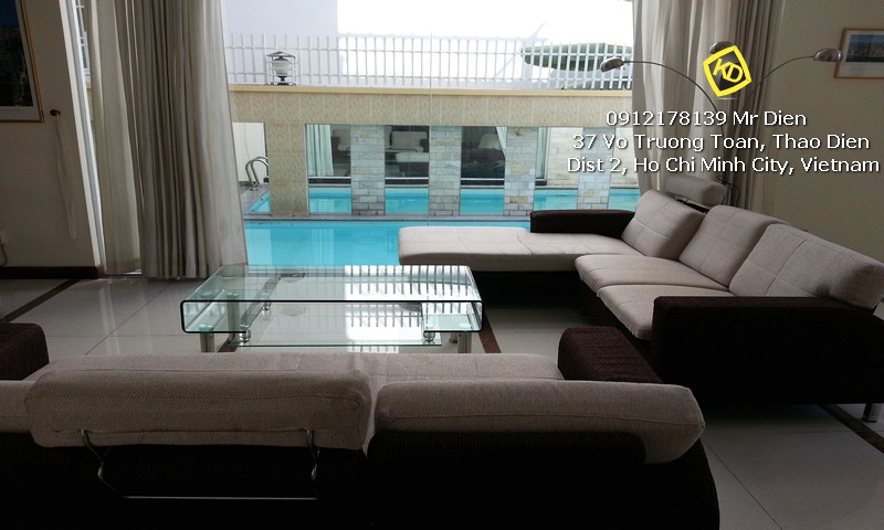 4. Cho thuê biệt thự Fideco Thảo Điền hiện đại và phong cách, tọa lạc ngay cuối hẻm xe hơi cực an ninh, biệt thự được thiết kế cực phong cách, quang cảnh đẹp. Điểm nhấn của biệt thự là khu phòng khách, hồ bơi và khu bếp rất tiện nghi và phong cách. Giá thuê 4000 USD/ tháng