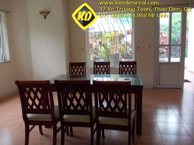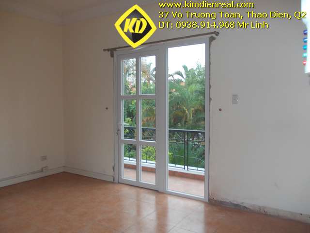 Cho thuê biệt thự hồ bơi sân vườn Xuân Thủy Thảo Điền, diện tích 900m2, diện tích xây dựng 400m2, 1T, 1L, 4PN, 4WC, phòng khách, bếp, nhà ăn toàn bộ đều rộng rãi.