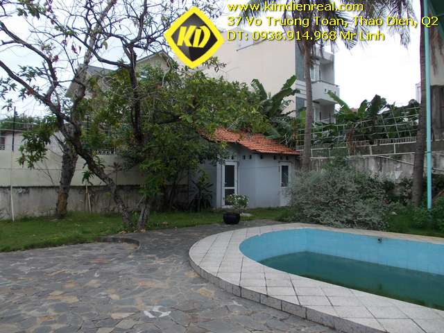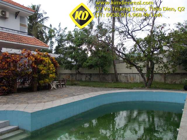 Cho thuê biệt thự hồ bơi sân vườn Xuân Thủy Thảo Điền, tọa lạc trên đường Xuân Thủy nối ra Nguyễn Văn Hường, khu an ninh, yên tĩnh, giao thông thuận lợi cách cầu Sài Gòn 500m, biệt thự có sân vườn hồ bơi, có phòng bảo vệ, diện tích lớn 900m2, tiện lơi cho việc thuê vừa ở vừa làm VP công ty.