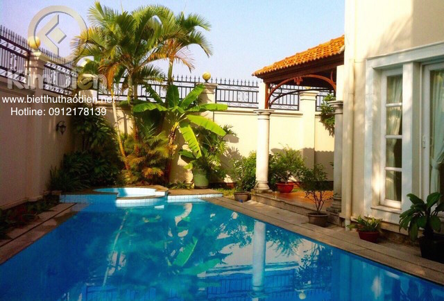 CHO THUÊ BIỆT THỰ THẢO ĐIỀN MẶT SÔNG SÀI GÒN có diện tích khuôn viên rộng hơn 700m2 xanh mát và thoáng đãng, công trình xây dựng gồm villa sang trọng 1 trệt 2 lầu với lối kiến trúc thoáng mở phong cách phương Tây, nhà có 4 phòng ngủ rộng lớn sang trọng và tiện nghi ngắm nhìn sông Sài Gòn, Hồ bơi rộng đẹp và khu sân vườn xanh mát, xung quanh nhà trang bị hệ thống Camera cảnh báo đột nhập.