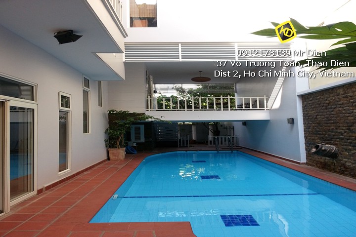 Cho thuê biệt thự Thảo Điền trong khu villa cao cấp an ninh, bảo vệ trực 24/24, có hồ bơi xanh biếc mắt nhà trang bị sẵn nội thất đẹp cao cấp khách vào ở ngay.