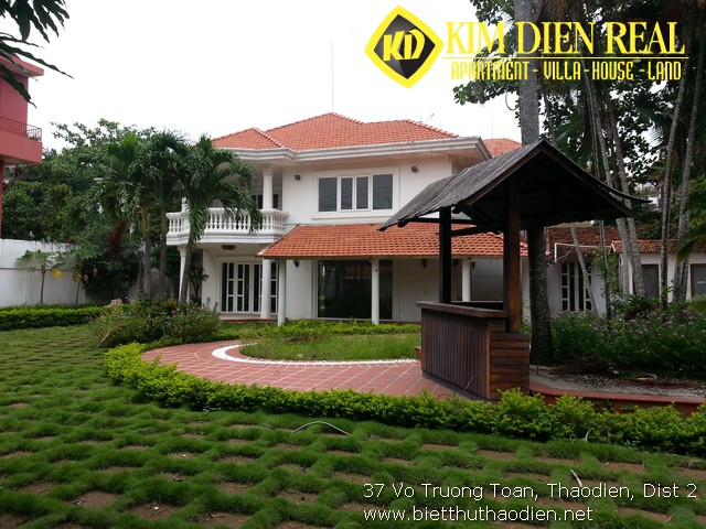 Biệt thự Thảo Điền cho thuê có diện tích khuôn viên rộng 1200m2, mặt tiền rộng 20m, vị trí rất thích hợp để mở Văn phòng công ty - Trường học - Nhà hàng - Spa, ... khuôn viên đất rộng làm sân vườn, và khu nhà phía cuối của đất tạo cho cảm giác toàn khu cực rộng và thoáng đãng.