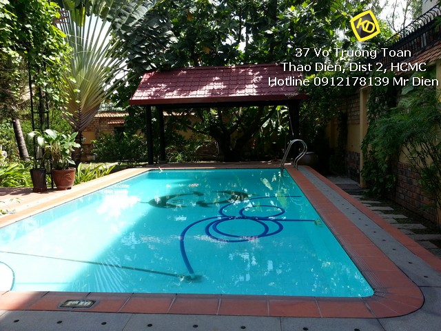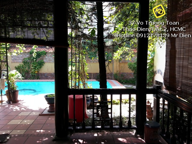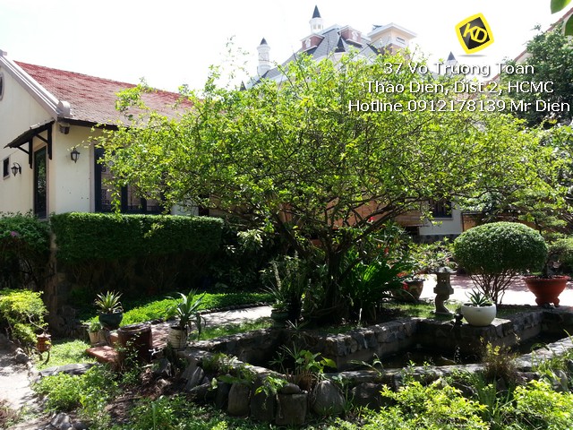 Cho thuê biệt thự Thảo Điền Quận 2 có diện tích viên rộng 25x55 có hai mặt tiền trước và sau nhà. Biệt thự gồm 4 phòng ngủ, có hồ bơi sân vườn rộng trồng nhiều cây hoa trái xanh đẹp, biệt thự được xây dựng như sau: