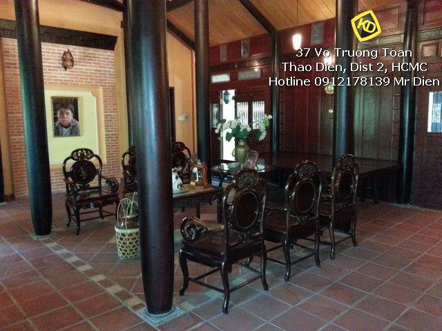 - Khu vực Bếp: là khu nhà gỗ 3 gian rộng lớn, riêng rẽ với nhà chính qua hành lang phía sau nhà chính, khu vực này gồm bếp thoáng rộng tiện nghi vật dụng,có khu phòng ăn cho gia đình và 1 phòng ngủ thoáng mát bài trí đẹp ngay tại đây, không gian yên tĩnh thoáng mát.