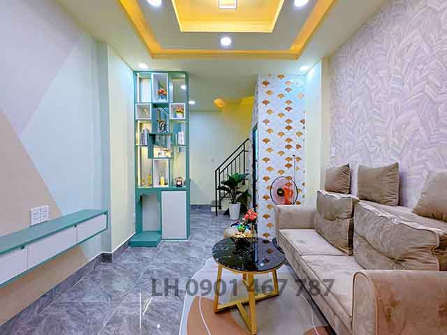 Tầng trệt, phòng khách - bếp - vệ sinh. Có 3 phòng ngủ, nội thất cao cấp