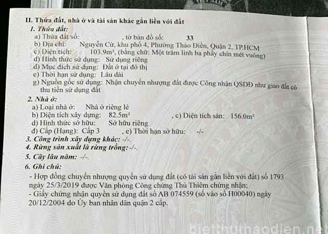Bán nhà đường Nguyễn Cừ Thảo Điền DT 103m2