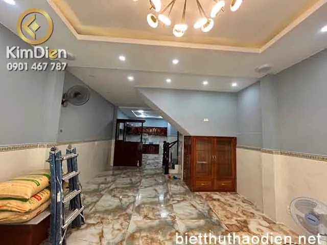Nhà có diện tích đất 56m2, mặt tiền 4.5m, dài 12m. Thửa đất vương vức, full thổ cư.