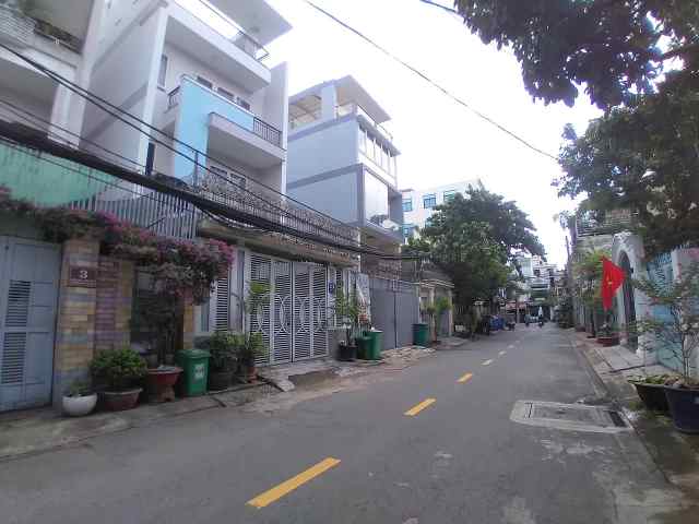 Nhà có diện tích đất 103m2, ngang 5m, chiều dài 20m. Kết cấu xây dựng 1 trệt, 2 lầu, ban công, sân đậu xe.